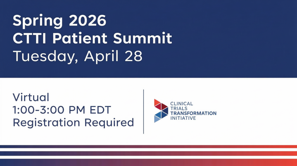 The CTTI Patient Summit on April 28, 2026, brings together patients, caregivers, and patient advocates to continue these discussions. Register now to attend.