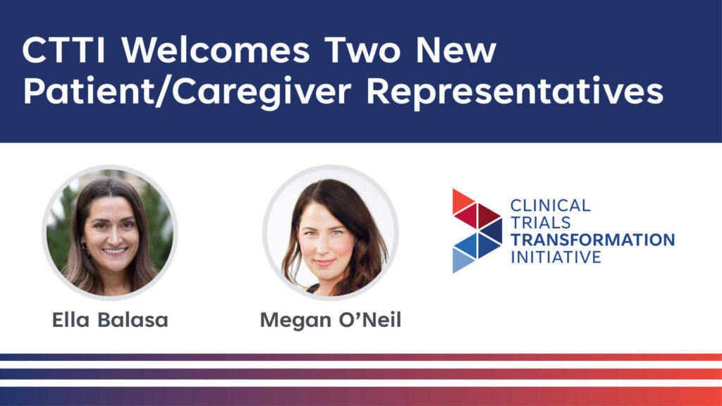 A core principle of CTTI’s vision to Transform Trials 2030 is to create a collaborative, patient-centered clinical trials landscape that fully integrates patients and patient organizations into the design and governance of studies. The addition of two new Steering Committee patient/caregiver representatives, Ella Balasa and Megan O’Neil, will play a key role in this bold initiative.